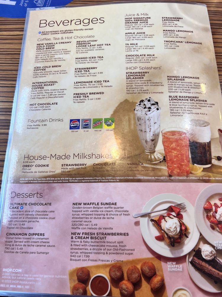 Choice of 4 refreshing 30oz. beverages. Choose from Fountain Drink Sodas, Lemonade or Iced Tea. Available for IHOP N GO only. Not available for dine-in.